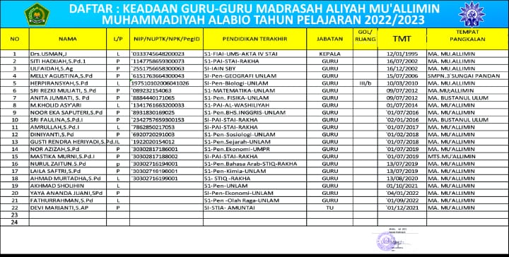 DATA KEADAAN GURU MAS MU'ALLIMIN ALABIO